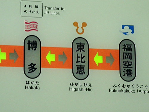 空港和博多只經一站" 東比惠", 讓我想起東京的惠比壽