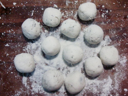 邊加水混合成團狀時要慢慢來, 一面加水一面搓揉,